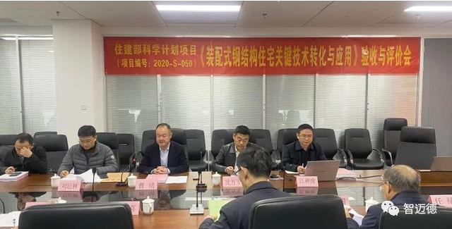 驗收委員會由九位行業(yè)知名專家組成,會上,富煌鋼構副總裁沈萬玉向專家組詳細匯報了課題完成情況和技術成果的應用情況。專家組認真聽取了匯報,審閱了驗收材料,對項目考核指標完成情況進行核查,驗收委員會認為:由安徽富煌鋼構股份有限公司和安徽建筑大學承擔的住建部科學計劃項目《裝配式鋼結構住宅關鍵技術轉化與應用》(項目編號:2020-S-050)完成了住房和城鄉(xiāng)建設部科學技術計劃——科技示范項目所規(guī)定的課題任務,同意通過驗收。