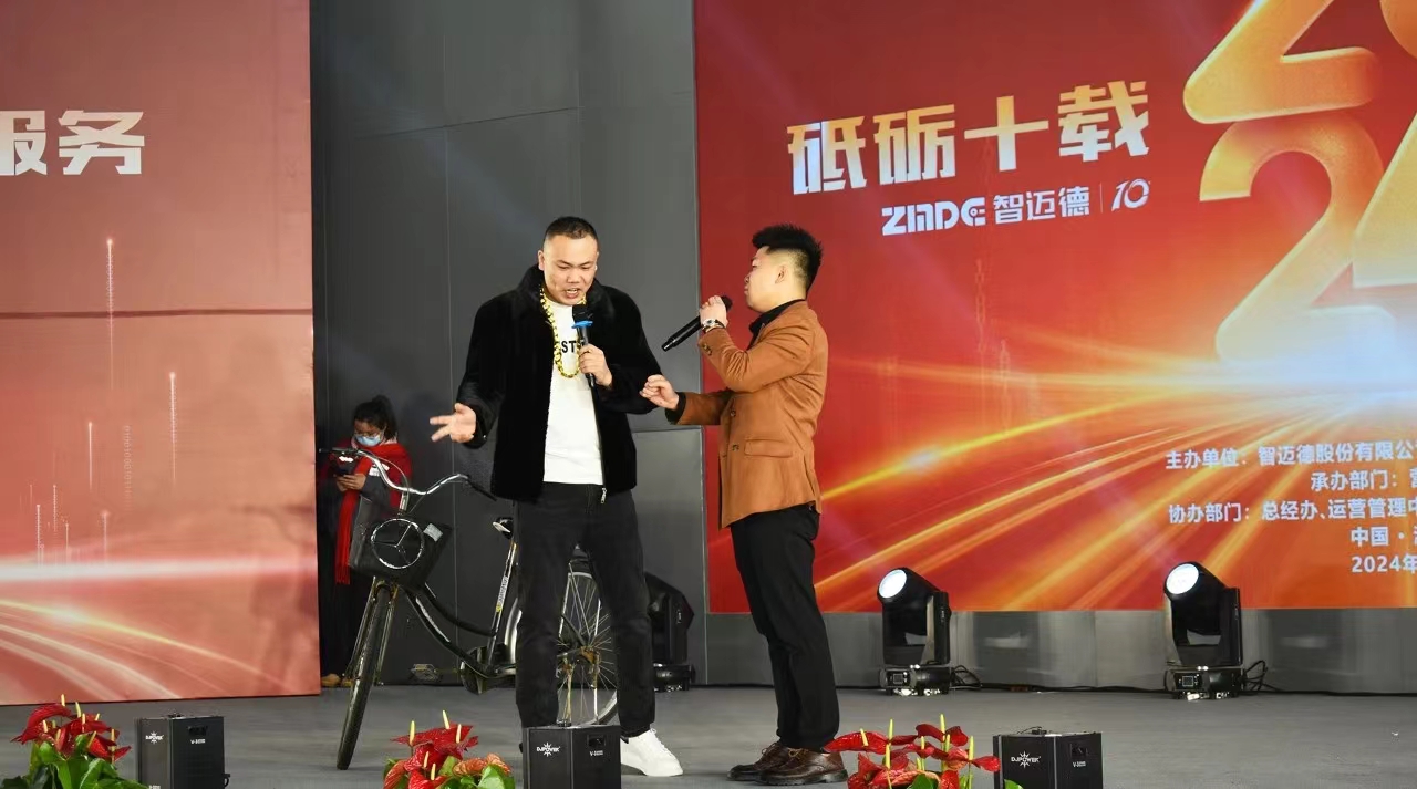 大會伊始,由公司董事長張兆瑞做新年致辭:十年風雨兼程,回顧過去,在全體員工的共同努力下,智邁德在國家級專精特新發展道路上踔厲前行,創造了一個又一個喜人的成績;立足當下,智邁德正穩步向前,穩中求進,實現高質量發展;展望未來,智邁德將延伸產業鏈,打造新引擎,加快品牌建設和市場推廣力度,加快拓展海外市場,圓滿達成2024年經營目標!