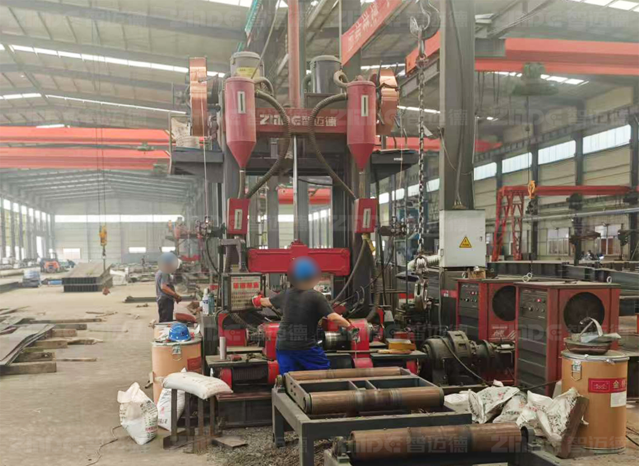 主動求變迎轉(zhuǎn)機,組焊矯一體機成關(guān)鍵組立、焊接、矯正是鋼結(jié)構(gòu)加工的三道關(guān)鍵程序,也是趙總的鋼構(gòu)廠亟待提升的環(huán)節(jié)。傳統(tǒng)的生產(chǎn)設(shè)備和工藝難以滿足市場的需求,此時一款集成了組立、焊接、矯正三道工序的新型設(shè)備進入了趙總的視野,這就是組焊矯一體機。趙總帶領(lǐng)技術(shù)團隊走訪調(diào)研了多家生產(chǎn)該設(shè)備的廠家,最終敲定了智邁德研發(fā)的裝配式H/T型建筑鋼梁組焊矯一體機。