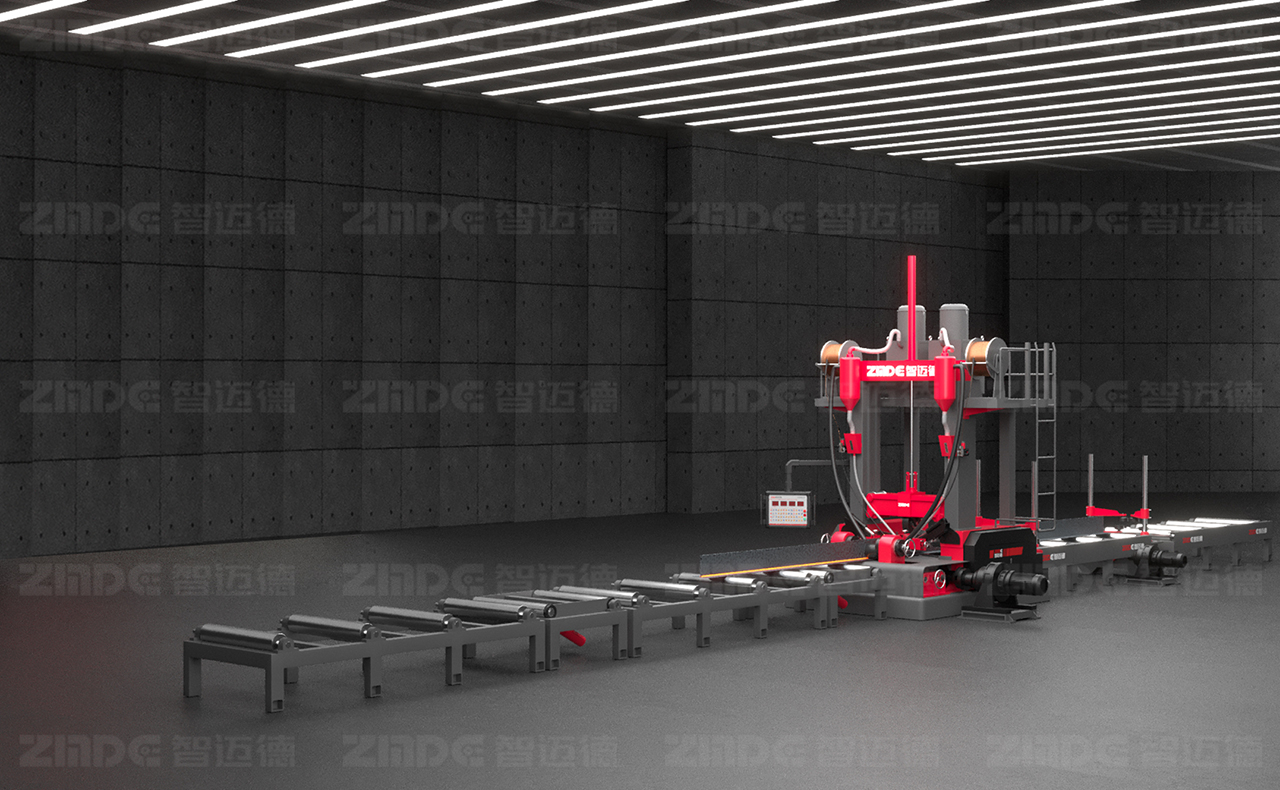 組焊矯一體機深度融合組立、焊接、矯正三道工序,實現了鋼結構生產流程的重構。設備通過精密、集成的設計和智能化控制系統,能夠實現整個過程的自動化、智能化生產,僅需1~2人即可完成操作,可自動對中,無需點焊,腹板18mm以下免坡口焊接,采用熱焊熱矯工藝,從頭焊到尾,提高了生產效率,提升了鋼構件的加工精度和品質。與此同時,可選配智邁德“絕影”三極三弧焊機,大幅提升焊接效率,或選配智邁德“烏騅”六極六弧焊機的組焊矯一體機,實現厚板的焊接。